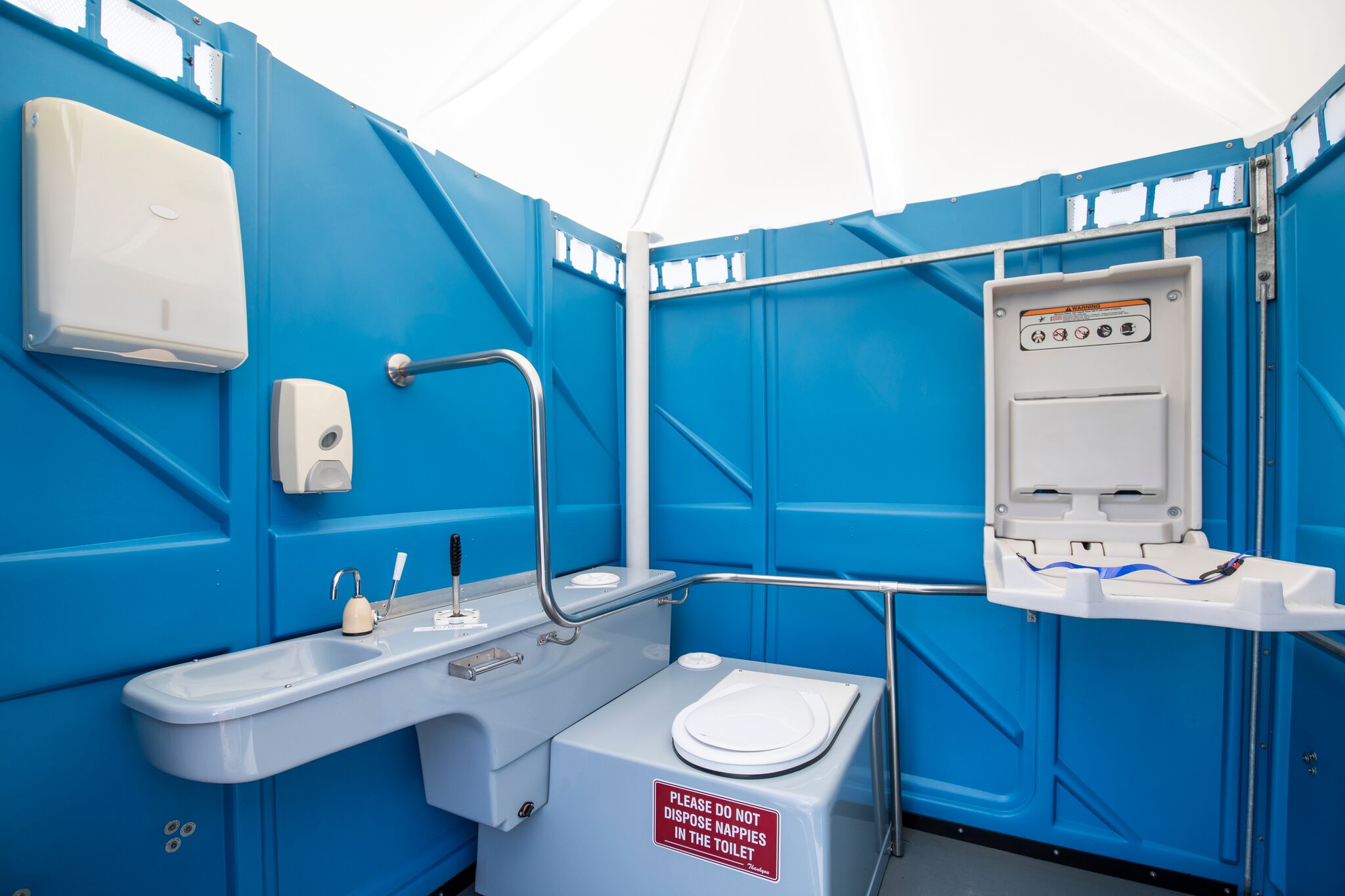Our fully compliant Disability Accessible Portable Toilets are complete with parent room facilities and designed flat at ground level for easy access. The units are spacious to allow adequate room for wheelchairs and prams.