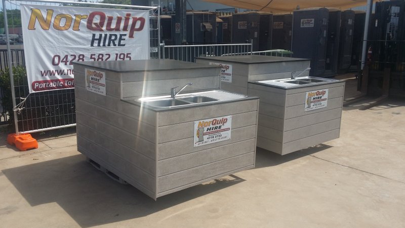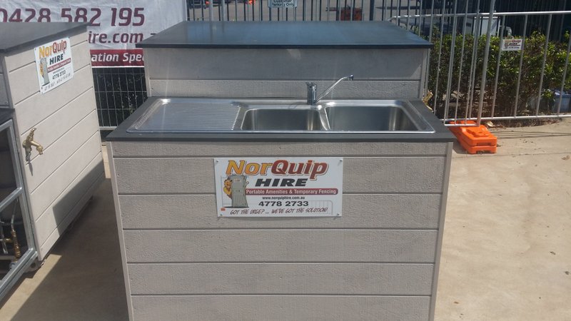 Featuring a double bowl sink with a flick mixer delivering running water where you need it. Works just like the kitchen sink at home. A great option for an outdoor event with food being prepared on site.