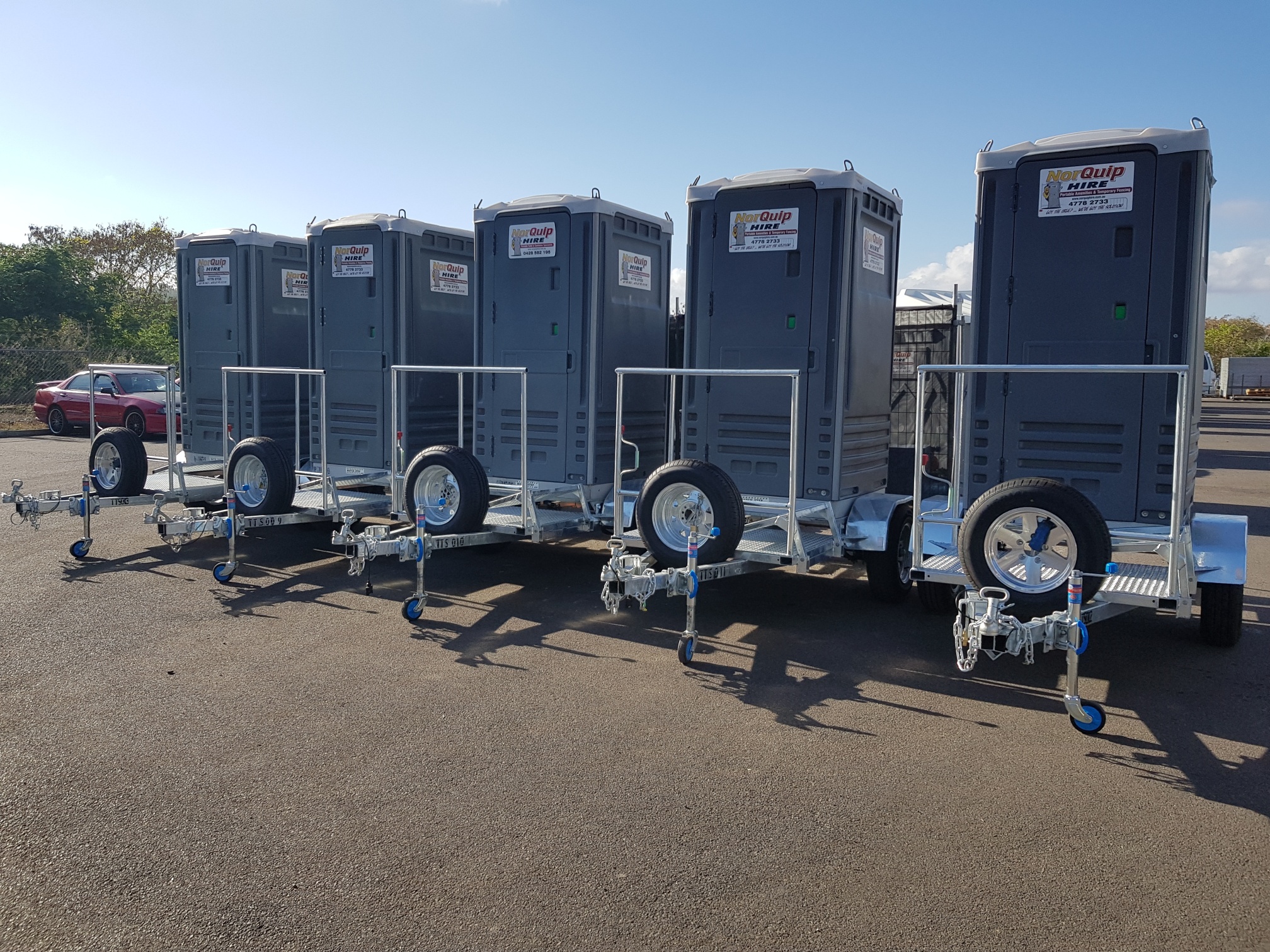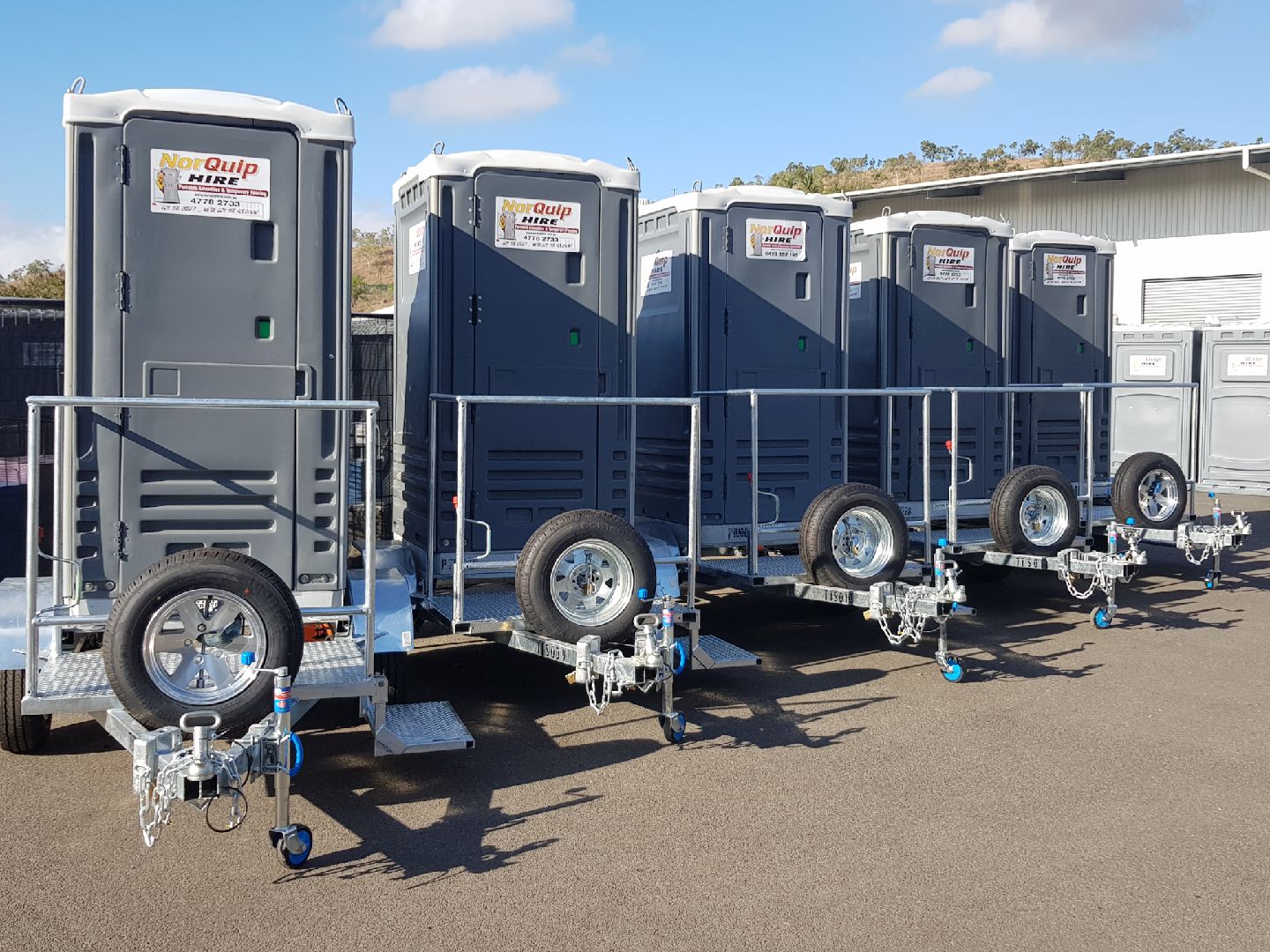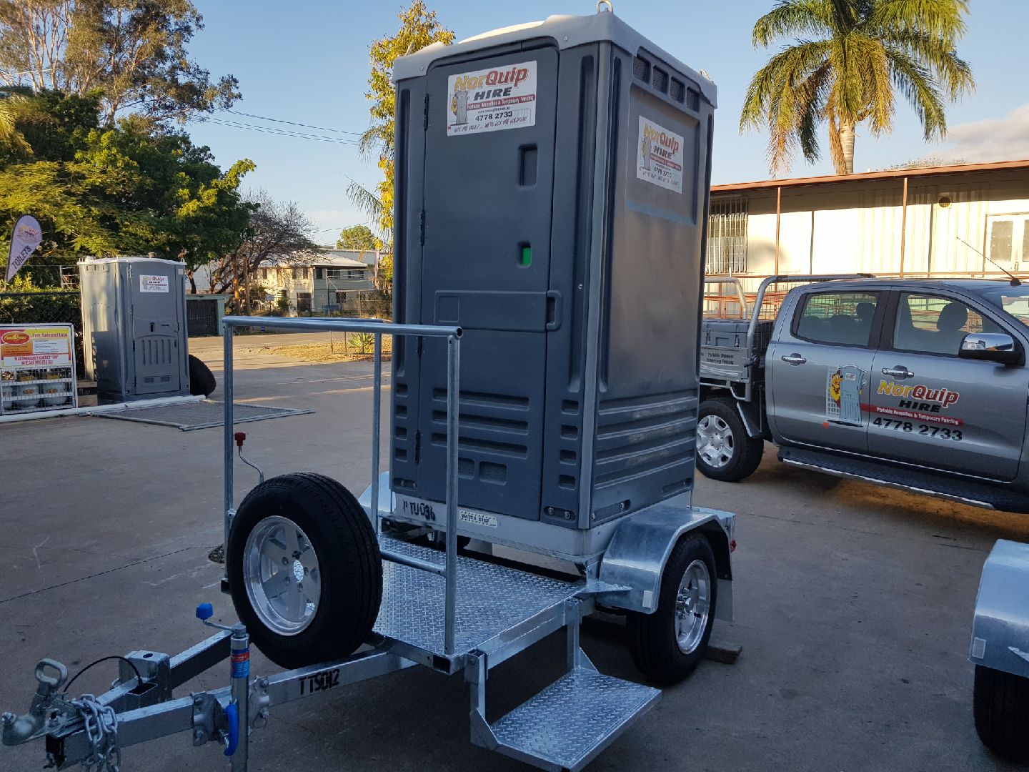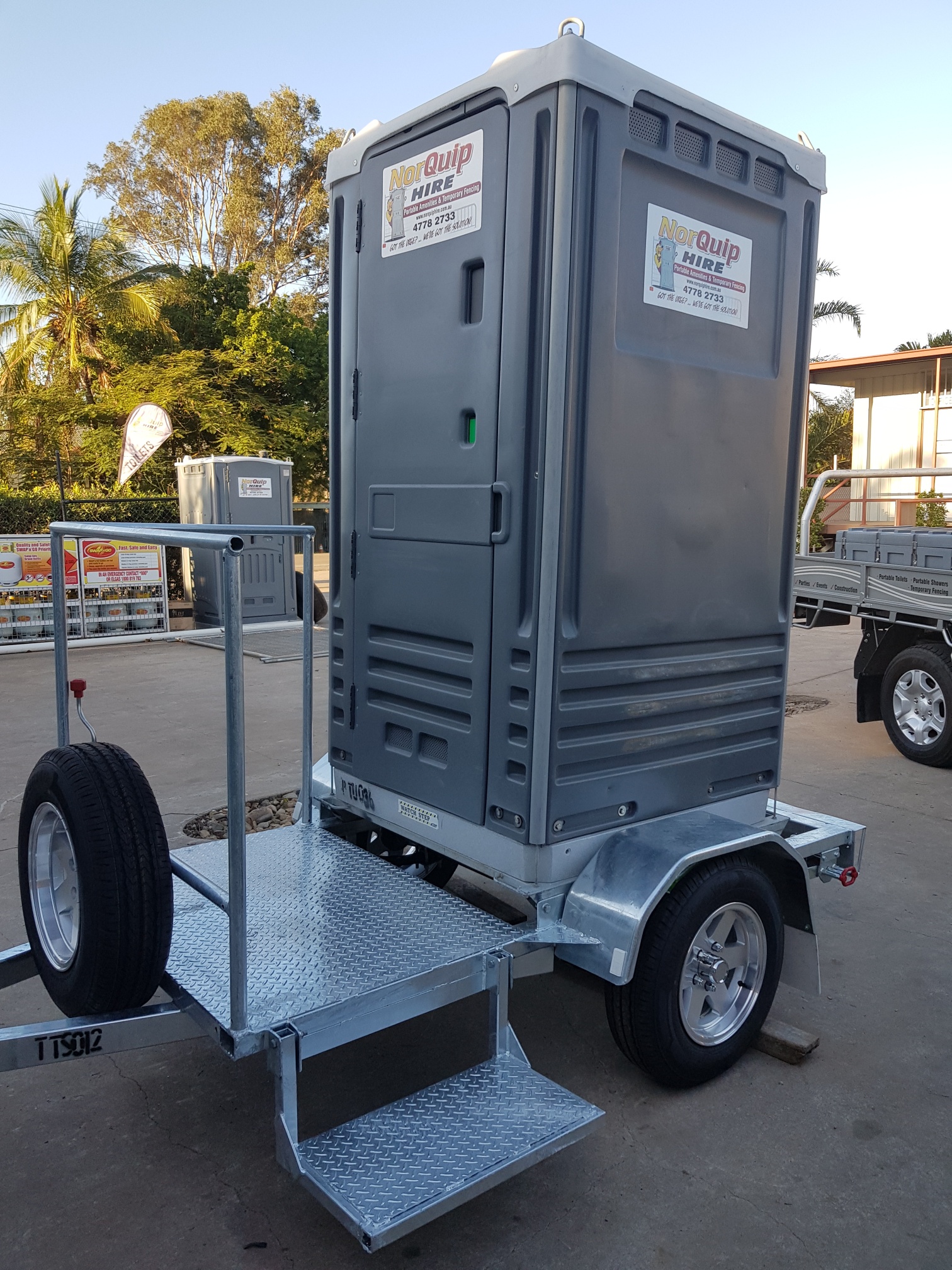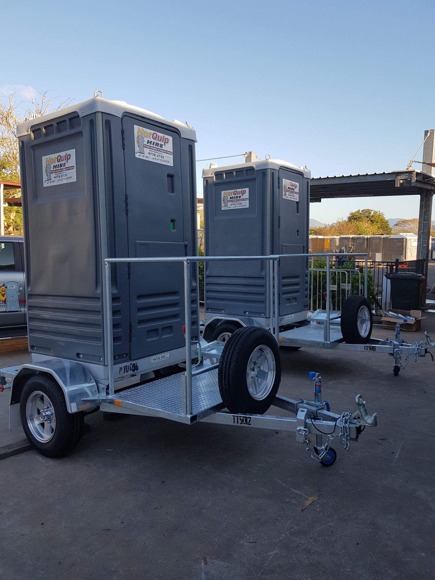 Single Toilet trailers are great for saving on the cost of delivery and collection.  All of our portable toilets and toilet trailers are hygienically cleaned prior to collection.  Available in builders-style or event-style portable toilets.